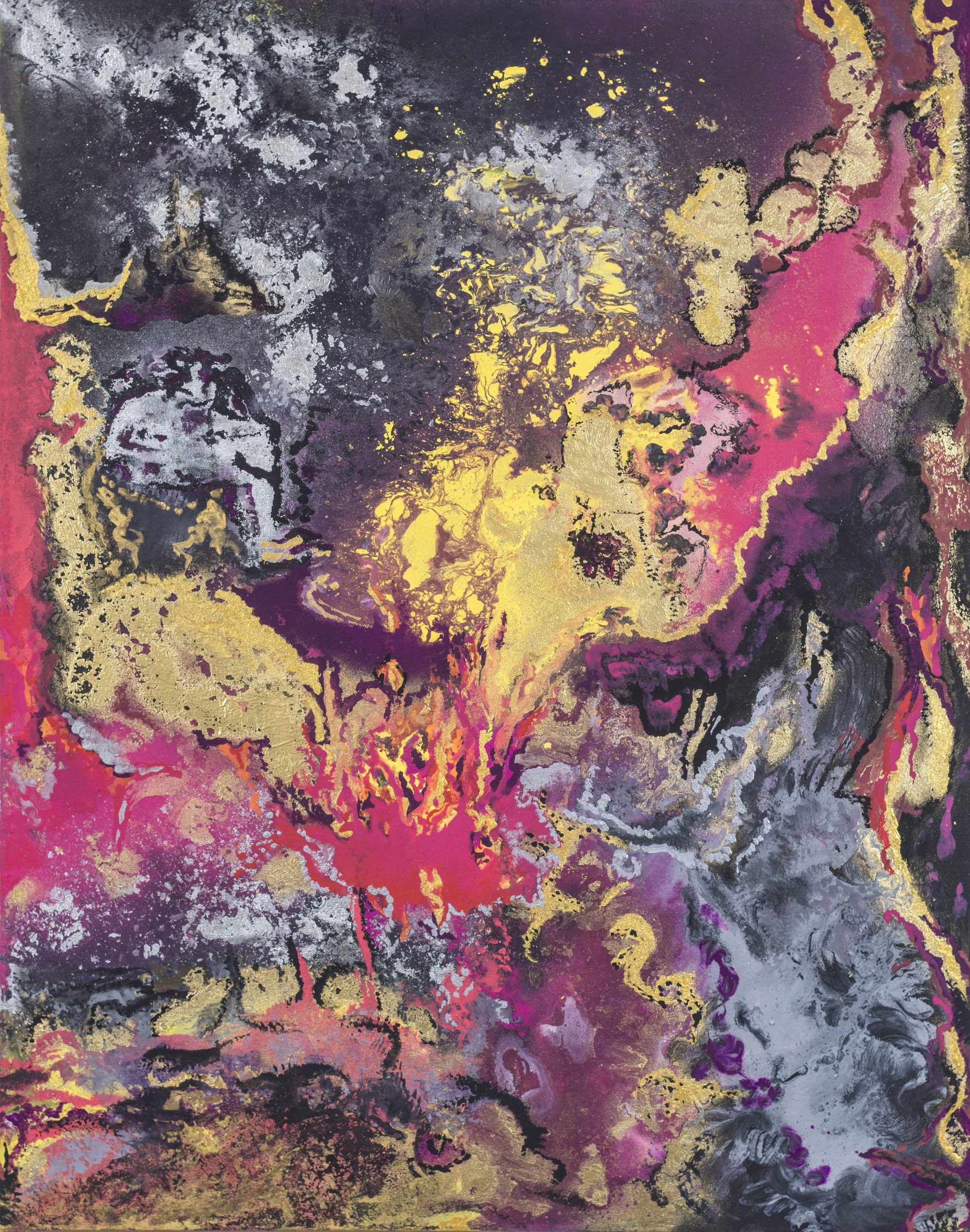 Reúne obras nacidas desde la entrega absoluta al acto de crear. Cada pieza surge de una inmersión emocional donde el color no describe paisajes: los encarna. Volcanes, océanos y fuerzas naturales aparecen aquí no como escenarios, sino como estados del alma en expansión.